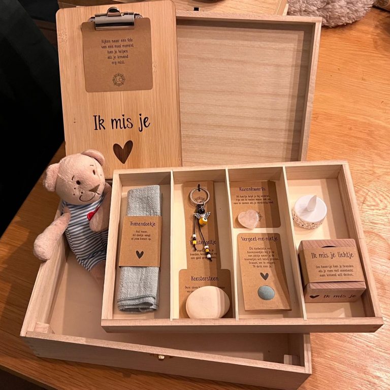 Het idee ontstond eigenlijk heel vanzelf. Een tijdje daarvoor hadden we al eens een houten kistje gepersonaliseerd. Dat beeld kwam meteen terug. Wat als we iets tastbaars konden maken? Iets wat een kind écht in handen kan houden. Een eigen plek voor herinneringen.